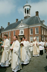 Shortly after his death Dokkum became a center of Boniface cult. The cult and pilgrimage tradition has over the centuries gone through both periods of decay, caused by the Protestant Reformation, as well as revival. Revival started in the second half of the nineteenth century, the period of the Catholic Revival in the Netherlands. Nowadays the worship of Boniface is spread over different places in Dokkum, visited by thousands of pilgrims every year.