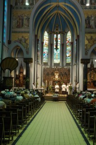 The present chapel dates from 1896. The large number of pilgrims required a larger chapel. It was built over the old chapel so that the services could continue as long as possible.